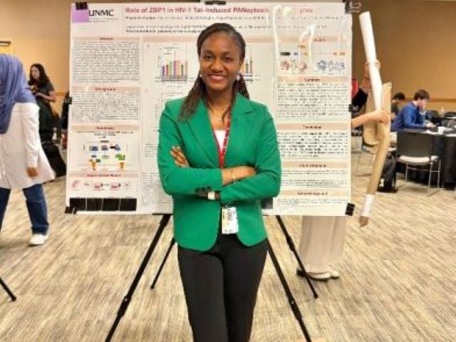 A Nigerian scholar, Elizabeth Oladipo, has earned global commendation after presenting groundbreaking research on how HIV affects the brain at the prestigious University of Nebraska Medical Center (UNMC), Omaha, USA.