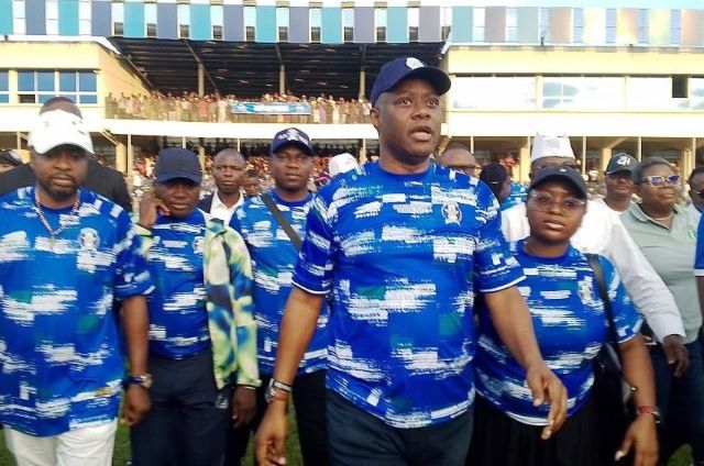 Oyo's Governor Seyi Makinde and others at the stadium on Sunday...