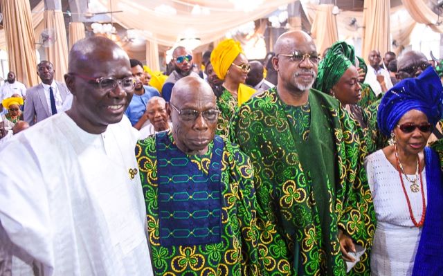 Former Ogun State Governor Aremo Olusegun Osoba, former Ondo State Governor Olusegun Mimiko, former Delta State Governor James Ibori, and former Speaker of the House of Representatives, Dimeji Bankole, were also in attendance.