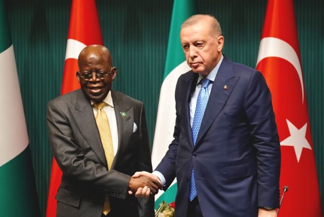 President Recep Tayyip Erdogan of the Republic of Türkiye, right, with Nigeria's counterpart, Bola Tinubu...