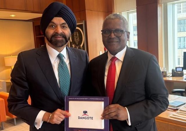 The President of World Bank Group, Mr. Ajay Banga on Tuesday played host to the President/Chief Executive of Dangote Industries Limited, Aliko Dangote in his office at the side of the IMF/WBG Spring Meetings in Washington DC, USA…see image here…
