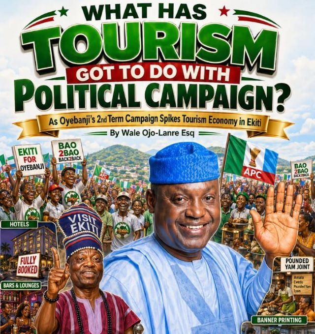 Yes, tourism has everything to do with political campaigns when the campaign moves people, activates hospitality, creates demand, and leaves economic value behind. That is why Oyebanji’s second-term campaign is not only moving supporters; it is also moving the tourism economy of Ekiti State.