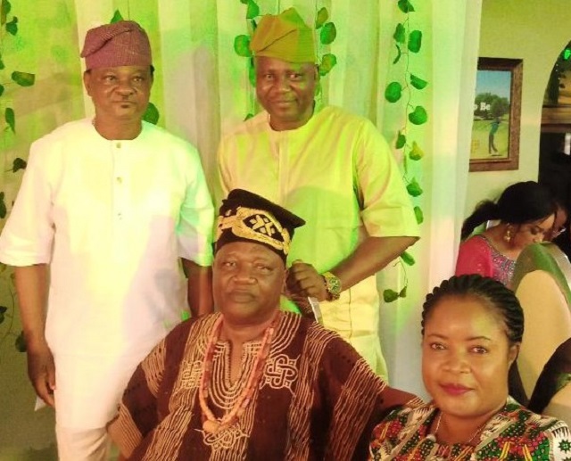 DJ Semight standing left with Engineer Sunday Gbenjo and the Orangun of Oke Ila Oba Adedokun Abolarin with his charming Olori Solape