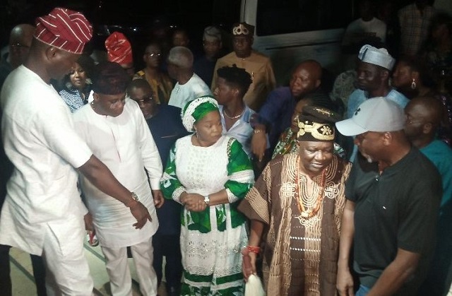 DJ Semight standing left with Engineer Sunday Gbenjo and the Orangun of Oke Ila Oba Adedokun Abolarin with his charming Olori Solape